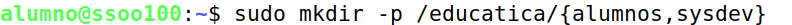 78. Crea un directorio llamado alumnos y otro llamado sysdev dentro de un nuevo directorio llamado educatica que estará en el raíz del sistema.