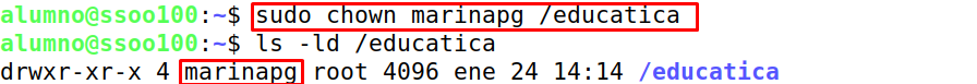 80. Cambia el propietario del directorio educatica para que el nuevo propietario sea marinapg