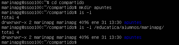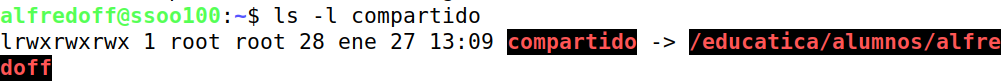 Vamos a meternos en el directorio compartido, que es un enlace a /educatica/alumnos/alfredoff.