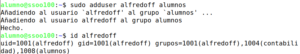 Vamos a comprobar si esto ha funcionado. Para ello vamos a cambiar al usuario alfredoff.