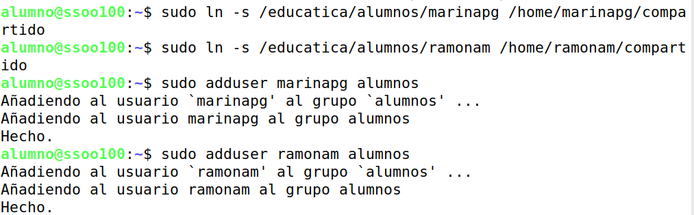 89. Repite este proceso, el de crear el enlace simbólico, para los usuarios ramonam y marinapg