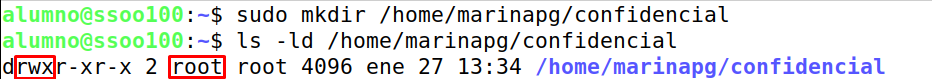 Hemos creado el directorio, pero con los permisos que se han establecido no se cumple lo que nos pide el enunciado.
