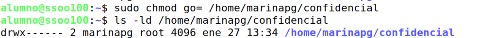 90. Crea un directorio llamado confidencial dentro del directorio personal del usuario marinapg al que solo pueda acceder marinapg para realizar cualquier operación de lectura escritura