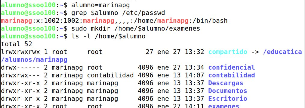 102. Crea una variable de entorno llamada alumnos cuyo contenido sea /educatica/alumnos
