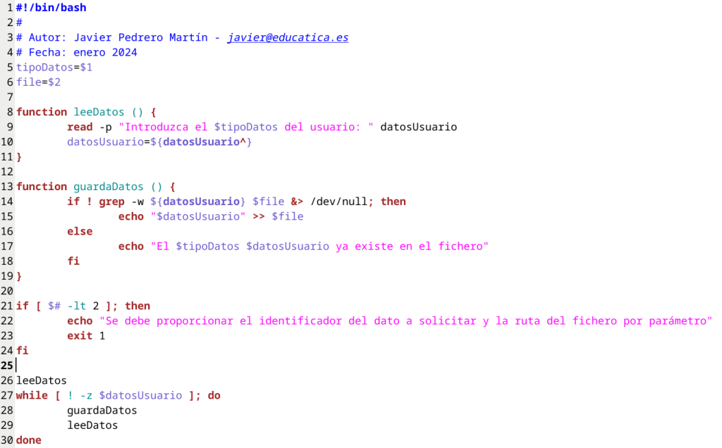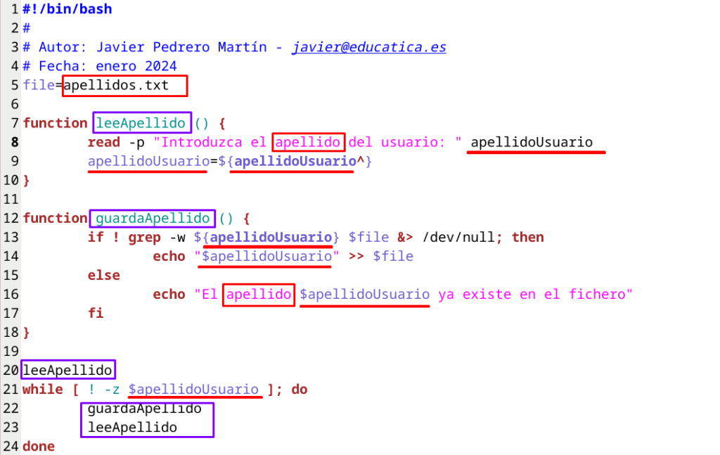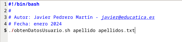 Si nos fijamos, el código del primer script y del segundo son casi idénticos.. salvo que en este caso el tipo de dato que estamos solicitando y almacenando será un apellido y que los datos se almacenan en un fichero llamado apellidos.txt