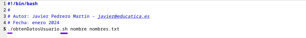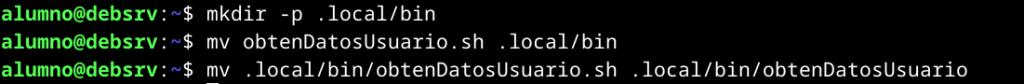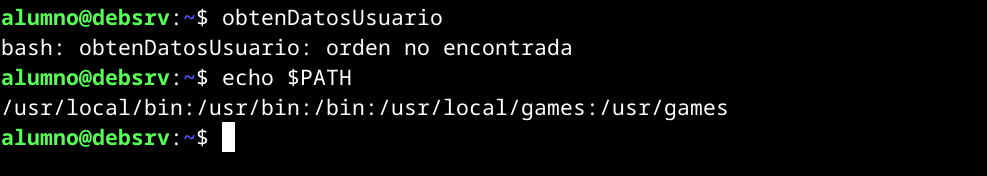 Tenemos un pequeño problema… a la hora de ejecutar el script obtenDatosUsuario.sh tenemos que indicar al bash que se encuentra en el directorio actual y además escribir la extensión. Nos gustaría poder ejecutar este script desde cualquier sitio, siempre que estemos con nuestro usuario y sin tener que mover el script al directorio /bin o /sbin.