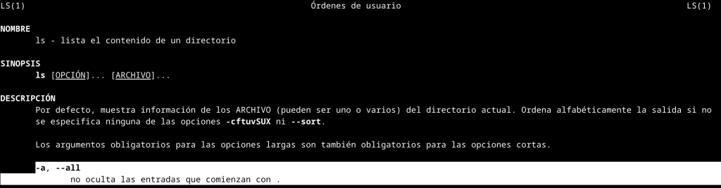 Con el comando ls podemos mostrar los ficheros ocultos, es más en la ayuda de ls nos cuenta cómo con la opción -a muestra todos los ficheros, incluso los ocultos con .