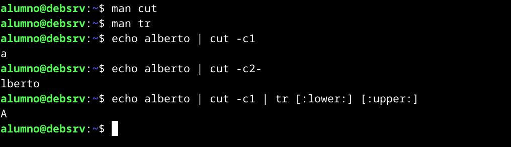 Vamos a enredar con el nombre del usuario. Podemos cambiar la primera letra con la ayuda de los filtros cut y tr.