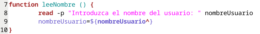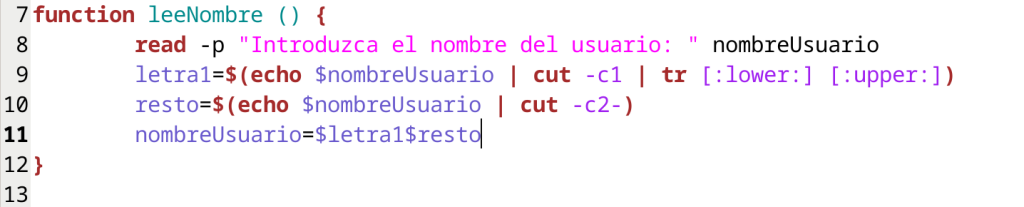De esta forma, el código nos quedaría como sigue en la función leeNombre
