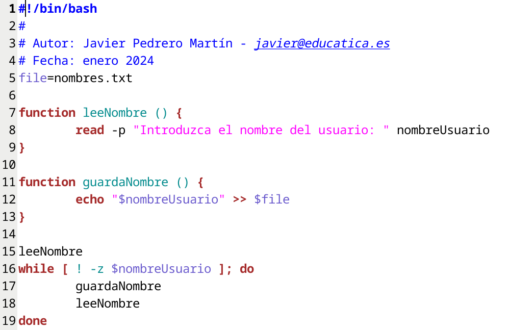 Vamos a crear un script que solicite nombres de usuario para almacenarlos en un fichero. El fichero de nombres de usuario deberá cumplir con ciertas restricciones: